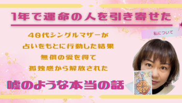 占い 【40代女性】が『運命の人を引き寄せた』方法 今からお伝えする話は40代シングルマザーがパートナーもおらずこのまま人生が終わるのかと絶望していた時占いに出会い結果通りに行動した結果人生がどんどん好転していって気づいたら1年で運命の人を引き寄せて無償の愛を得ることで孤独感から解放された嘘... 2024.12.28 占い引き寄せ恋愛未分類